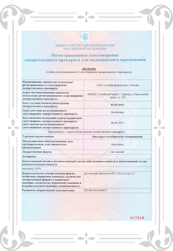 РЕГИСТРАЦИОННОЕ УДОСТОВЕРЕНИЕ ЛЕКАРСТВЕННОГО ПРЕПАРАТА ДЛЯ МЕДИЦИНСКОГО ПРИМЕНЕНИЯ