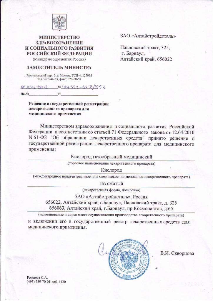 РЕШЕНИЕ О ГОСУДАРСТВЕННОЙ РЕГИСТРАЦИИ ЛЕКАРТСТВЕННОГО ПРЕПАРАТА ДЛЯ МЕДИЦИНСКОГО ПРИМЕНЕНИЯ